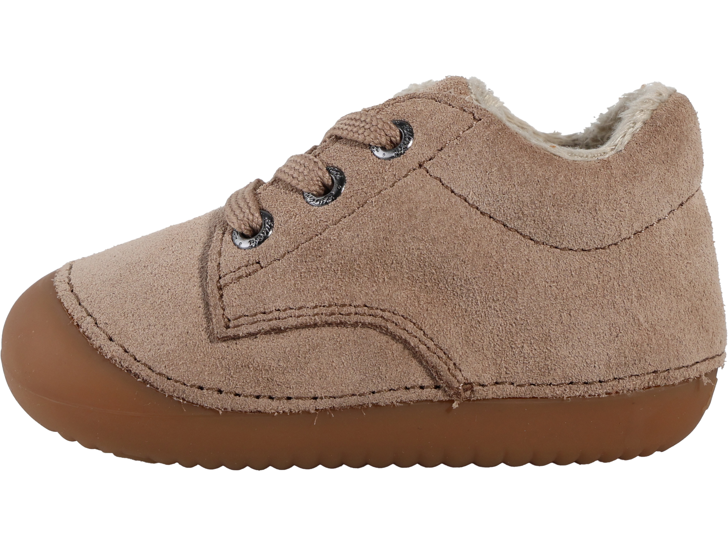 Wally ist der perfekte Begleiter für die ersten Schritte. Er besteht aus weichem Wildleder, hat eine besonders flexible Laufsohle mit hochgezogener Zehenpartie und ist angenehm weich gefüttert. So sitzen kleine Füße bequem und sicher – von Anfang an.