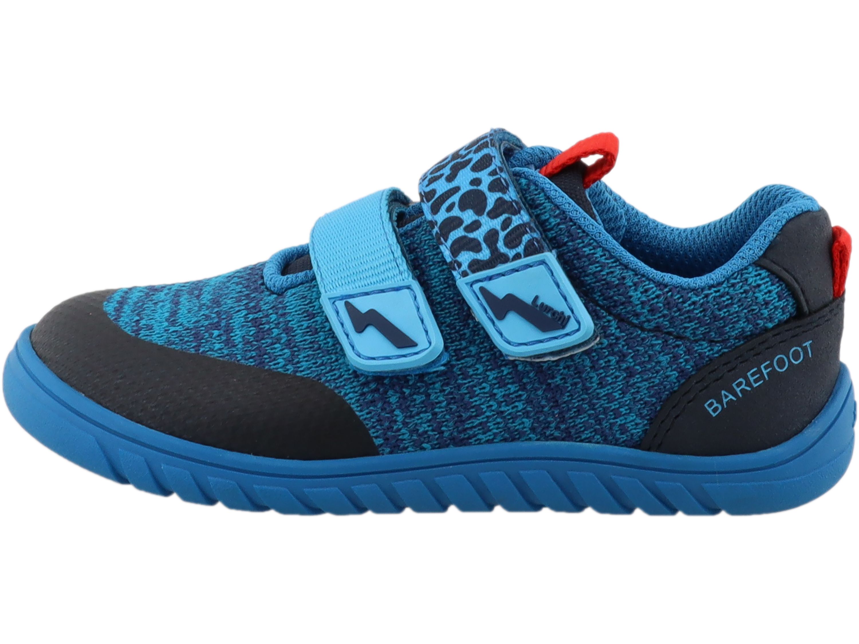 Barfuß-Fans aufgepasst! Diese Schuhe sind super leicht, total bequem und ermöglichen ein natürliches Abrollen des Fußes bei jedem Schritt. Wie barfuß – nur viel cooler! Und das mit einem Design, das kleine Abenteurer lieben. Textiles Obermaterial und flexible Sohle in leuchtendem Blau, Fersen- und Zungenschlaufe zum leichteren Anziehen in Kontrastfarbe und zwei Klettverschlüsse sind die optischen und funktionalen Highlights dieses Modells.